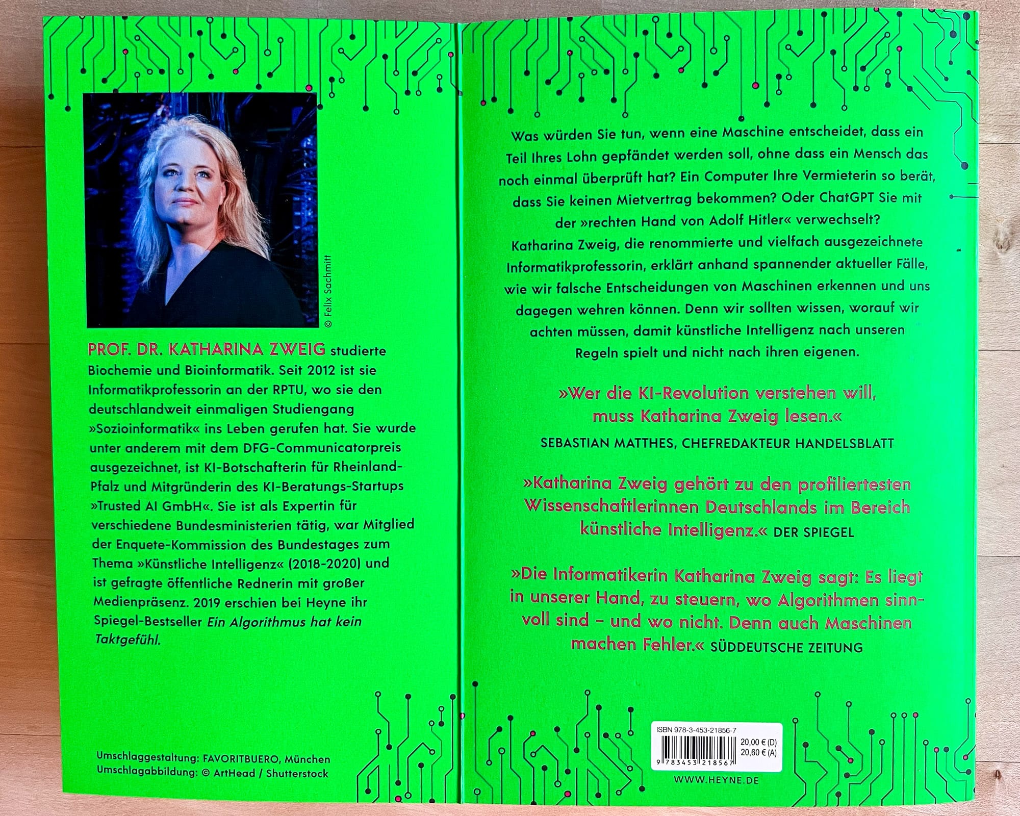 Prof. Dr. Katharina Zweig studierte Biochemie und Bioinformatik in Tübingen. Sie ist heute Informatikprofessorin an der RPTU Kaiserslautern-Landau, wo sie den deutschlandweit einmaligen Studiengang 'Sozioinformatik' ins Leben gerufen hat. Sie wurde unter anderem mit dem DFG-Communicator-Preis für Wissenschaftskommunikation und dem GDD-Datenschutz-Preis ausgezeichnet, ist KI-Botschafterin des Landes Rheinland-Pfalz und Gründerin eines KI-Beratungs-Start-ups. Sie ist als Expertin für verschiedene Bundesministerien tätig, war 2018 bis 2020 Mitglied der Enquete-Kommission des Bundestages zum Thema 'Künstliche Intelligenz' und ist gefragte öffentliche Rednerin mit grosser Medienpräsenz. 2019 erschien bei Heyne ihr Spiegel-Bestseller 'Ein Algorithmus hat kein Taktgefühl', 2023 legte sie mit dem zweiten Bestseller 'Die KI war's' nach. Zweig ist verheiratet und hat zwei Kinder.