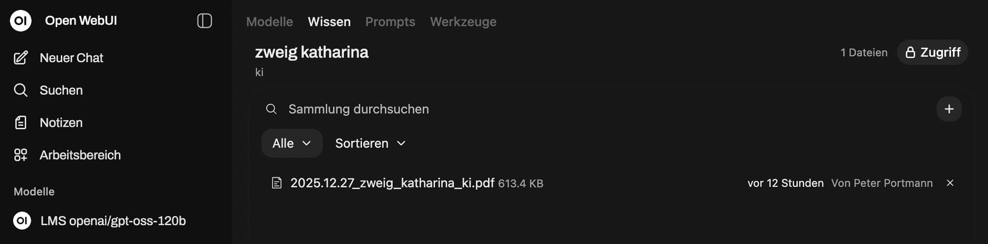- In der neuen Sammlung 'zweig katharina' können nun Dokumente hinzugefügt werden
