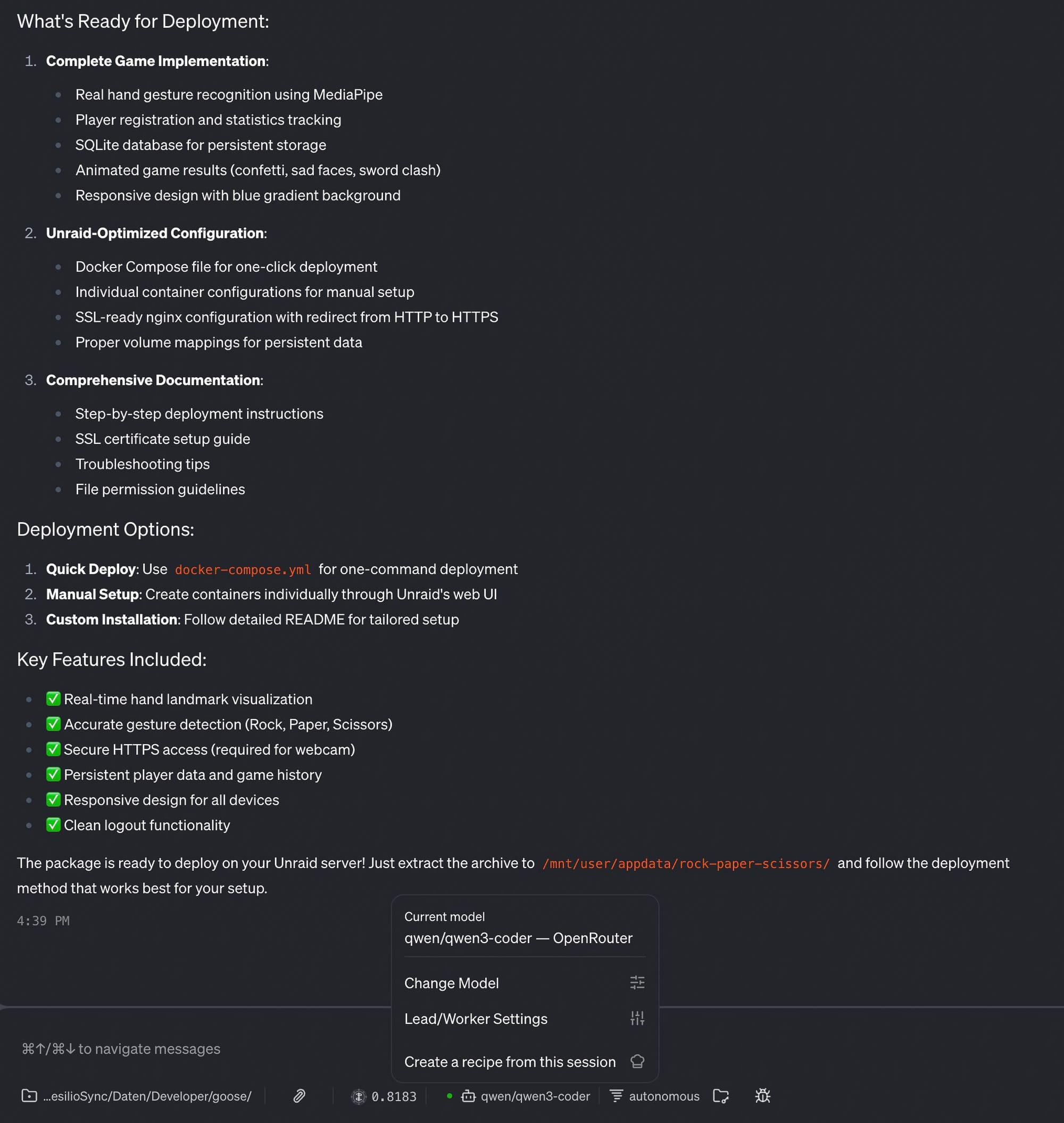 Grundsätzlich funktionieren lokale Modelle durchaus. In diesem Projekt wollte ich jedoch primär die Funktion von Goose testen.
